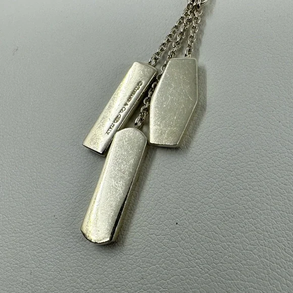Tiffany & Co. 1837 Sterling Silver Necklace 16" chainThree dangle bar charms: T&Co., 1837 & 925Chain is stamped 925 Italy / Tiffany & CoCharm is stamped Tiffany & Co. 925 ItalyGood condition with minor wear.Designer Luxury Jewelry Tiffany & Company T&Co Necklace Lariat Y-Shaped Dangle Charm Sterling Silver 925 Classic Casual