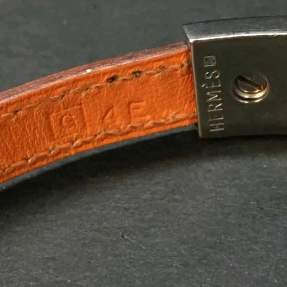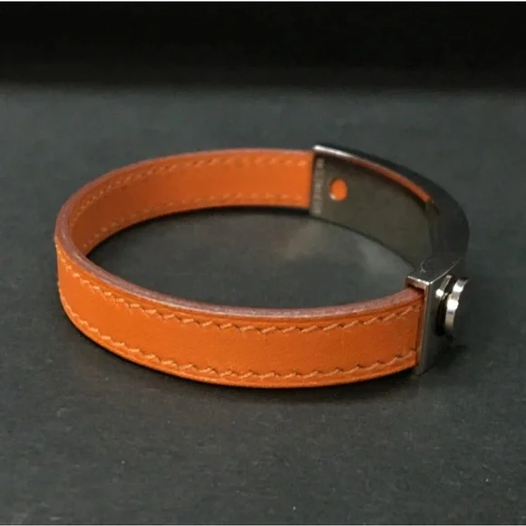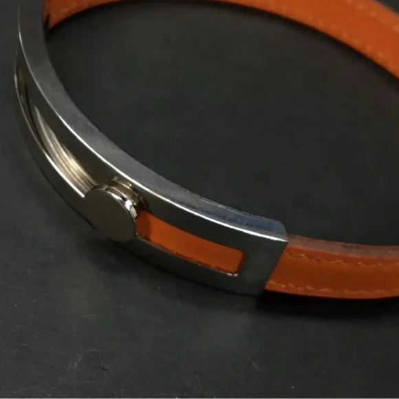 HERMES Pousse Pousse Leather Silver Tone Bracelet Orange