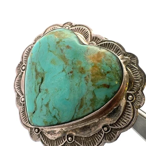 * Native American 925 Sterling Silver Turquoise Heart Concho Clip On Stud Earrings * Length: 1-1/8"* Width: 1-2/8"* Weight: 17.2 tgw* Each turquoise stones measures approximately...