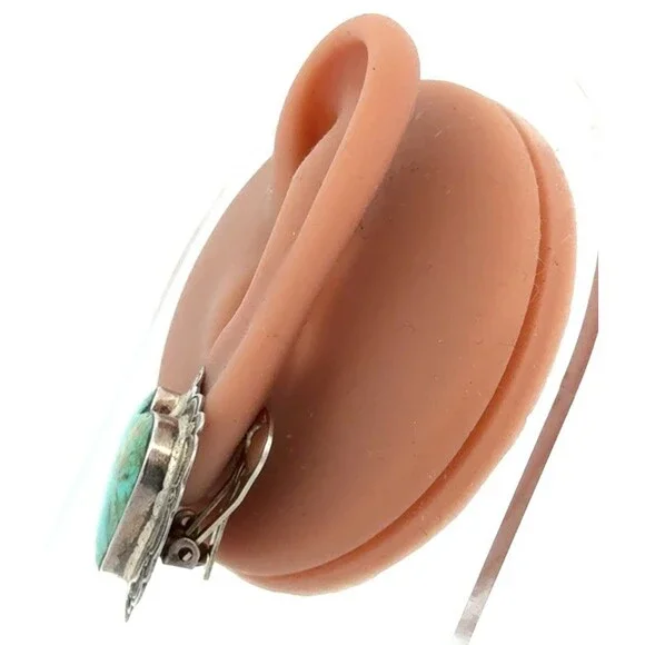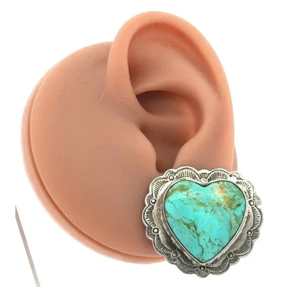 Native American 925 Sterling Silver Turquoise Heart Concho Clip On Stud Earrings