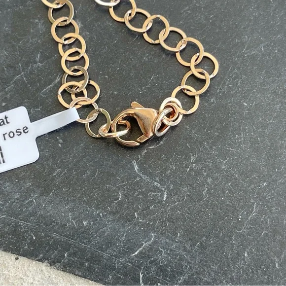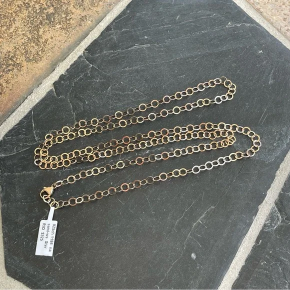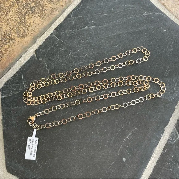This elegant Sterling Silver 925 Rose gold plated chain, 37” long necklace, links are 5.7mm round flat cable link chain, chain weighs 10.3 grams, new with tags, adds a touch of...