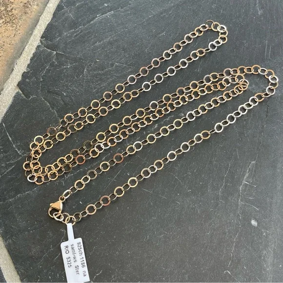 Elegant Sterling Silver 925 Rose Gold Plated 37” Chain Necklace