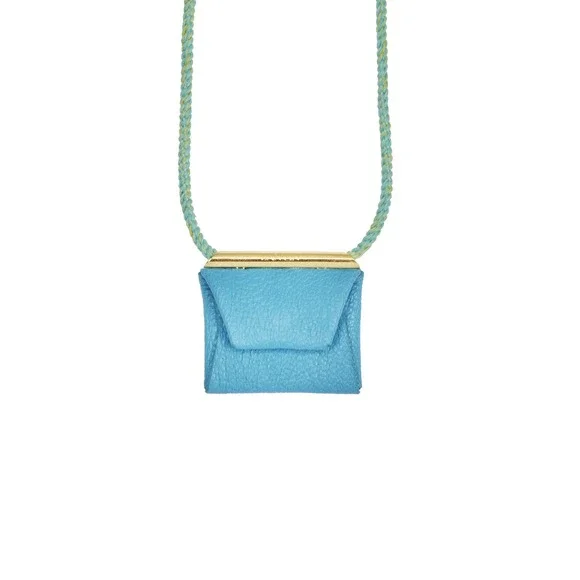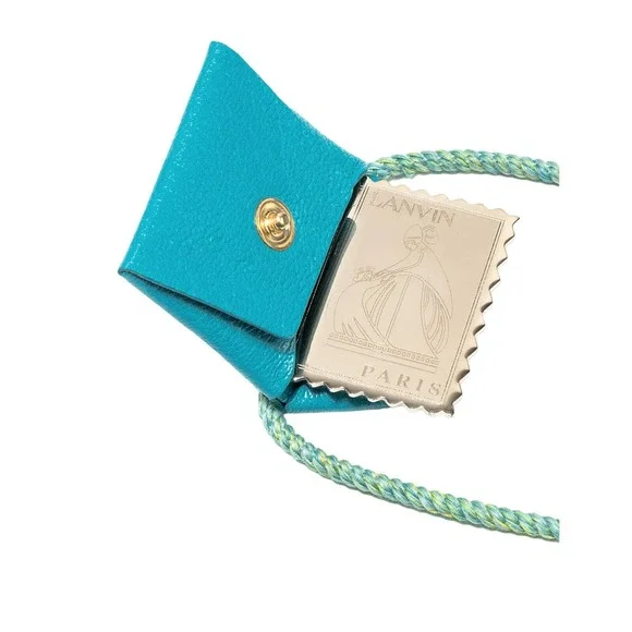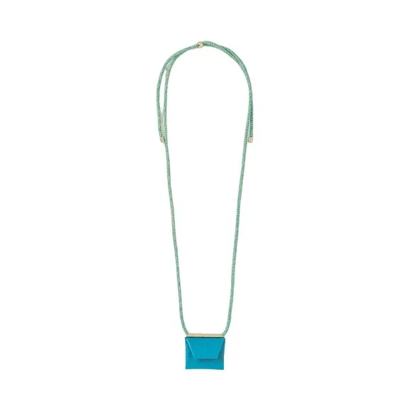 Necklace with envelope-shaped pendantTurquoiseDecorative Lanvin stamp engraved on the envelopeWoven cotton string custom-made in FranceGold-plated brass detailsAdjustable sliding fastening with bead engraved with Mother and Child logoAssembled by handOne sizeMain material: 100% goatskin leatherSecondary material: 100% cottonAdditional material: 100% brassMade in Italy
