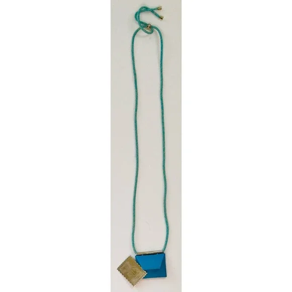 Necklace with envelope-shaped pendantTurquoiseDecorative Lanvin stamp engraved on the envelopeWoven cotton string custom-made in FranceGold-plated brass detailsAdjustable sliding...
