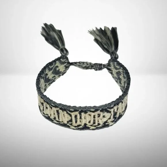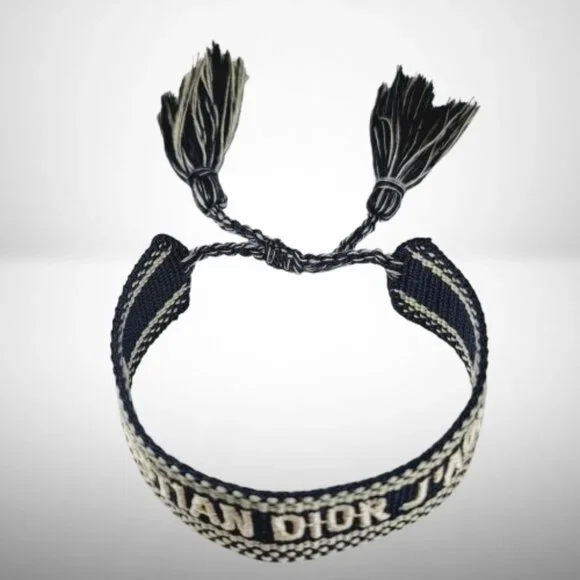 The Christian Dior bracelets are available in a new combination of colors. The Christian Dior signature adorns navy blue cotton, paying tribute to the iconic Dior Oblique motif. The bracelets are adjustable with handmade tassel cords and can be worn for any occasion, alone or stacked.Embroidered Christian Dior signature on the frontNavy blue Dior Oblique motifSlide fastening with tasselsThis set contains 2 (two) braceletsMade in ItalyAdjustable length: approximately 14 – 23 cm / 5.5 – 9 inchesWidth: 1.5 cm / 0.5 inchEach bracelet comes with its original dust bag and a box. ***PLEASE NOTE that I am not a store. Though I stand behind every item I sell, I do not provide any receipts, guarantee, warranty or proprietary information on where I purchased my products. All sales are final, once you have purchased an item and confirmed the purchase. In order to avoid any issues, if you have any questions or concerns about an item, I encourage you to ask all of your questions before making a purchase. If you are not sure, please do not purchase.
