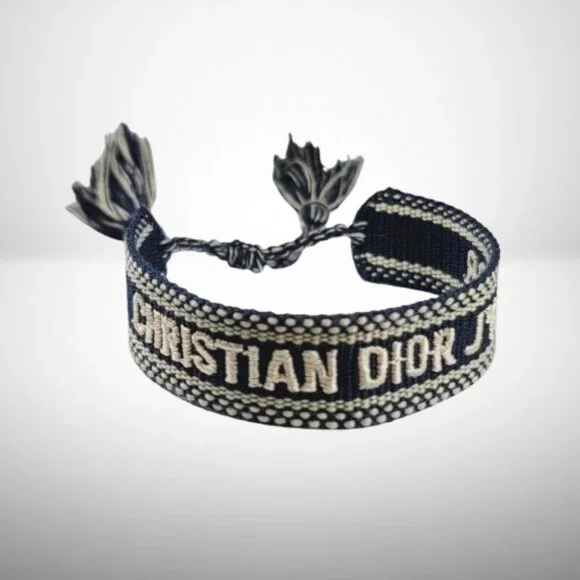 The Christian Dior bracelets are available in a new combination of colors. The Christian Dior signature adorns navy blue cotton, paying tribute to the iconic Dior Oblique motif....
