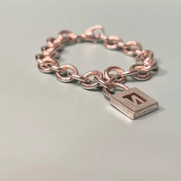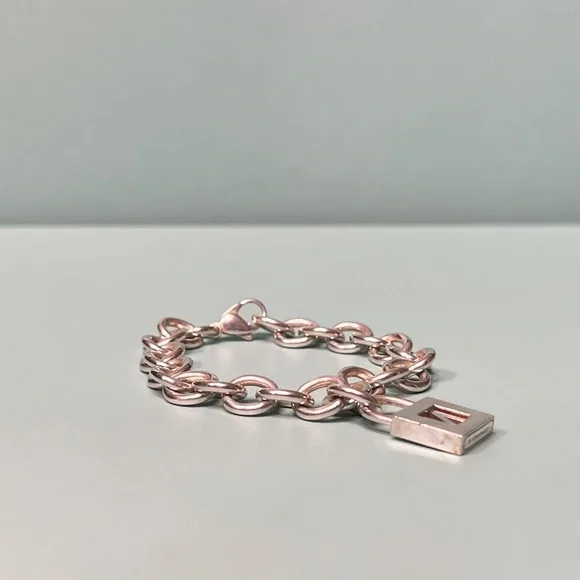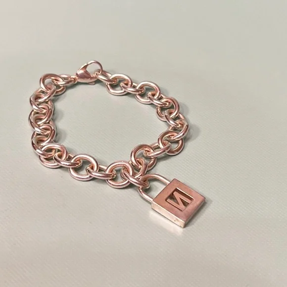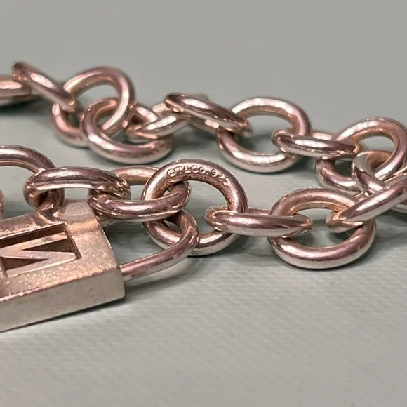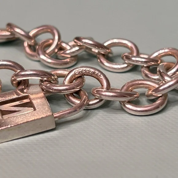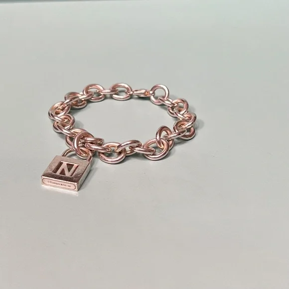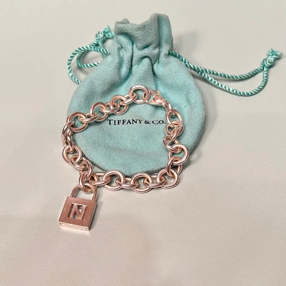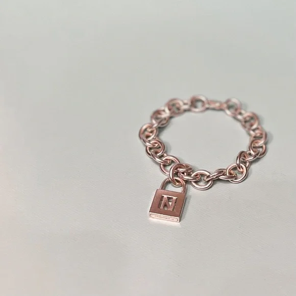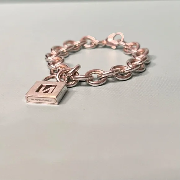 Tiffany & Co Sterling Silver Charm Bracelet with Letter N Padlock Charm