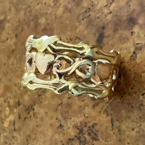 Vintage Gold + Rose Gold Celtic Ring. Hearts, knots, infinity loop.