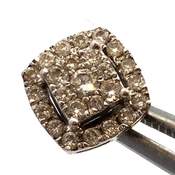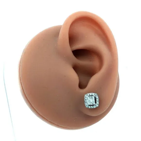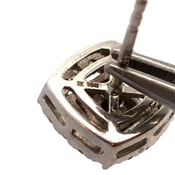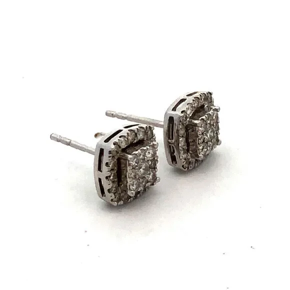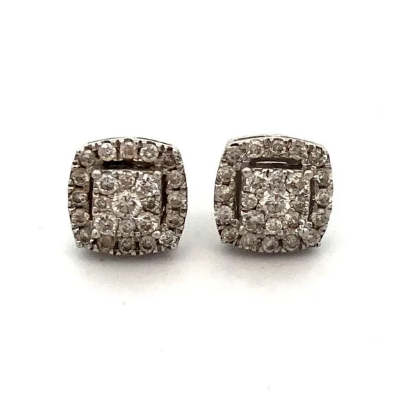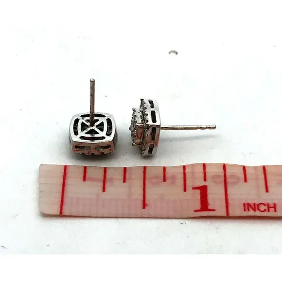 * Designer HK 10K White Gold Diamond Cluster Pave Halo Square Stud Earrings* Stud measures: 5/16"* Height: 3/16"* Weight: 1.6 tgw* 72 Round Diamonds measure approximately 1 mm...