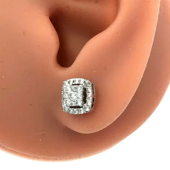 Designer HK 10K White Gold Diamond Cluster Pave Halo Square Stud Earrings