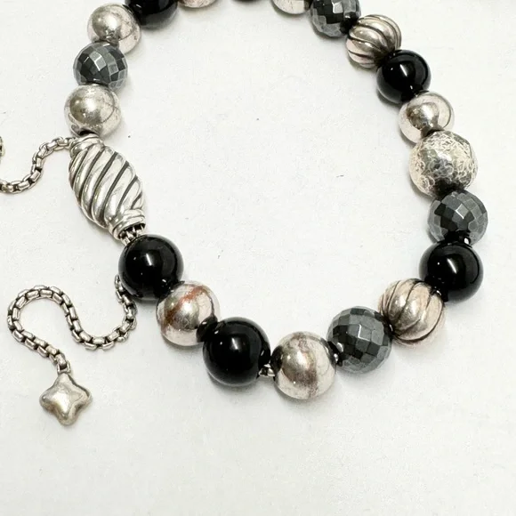 David Yurman .925 Elements 8mm Black Onyx Hematite Bead Bracelet