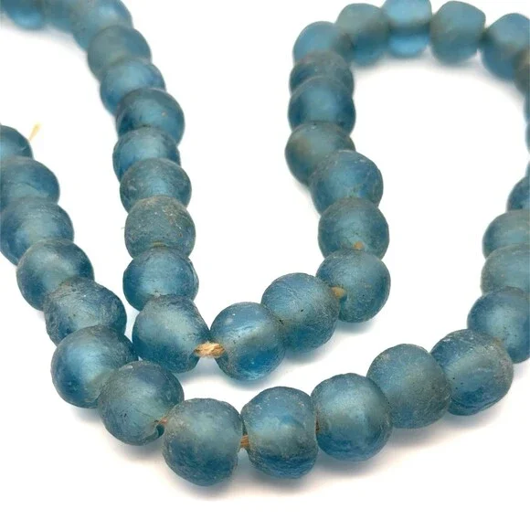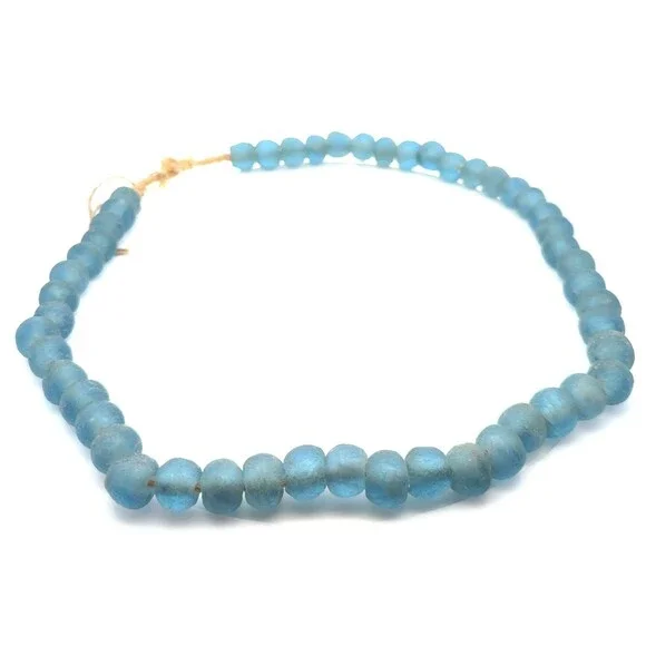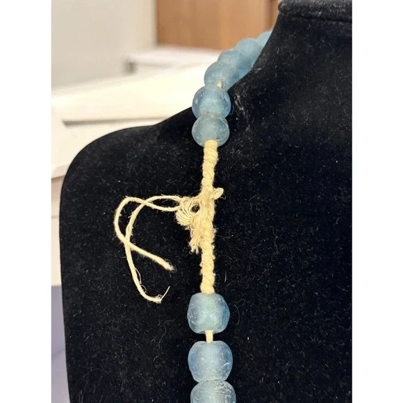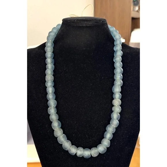 * Unique Blue Sea Glass Hand Strung Beaded Statement Necklace * Length: 23"* Width: 5/8"* Weight: 145.33 tgw* Each glass bead measures approximately 14 mm x 12.23 mm* Unmarked.* Condition: As pictured* C1093