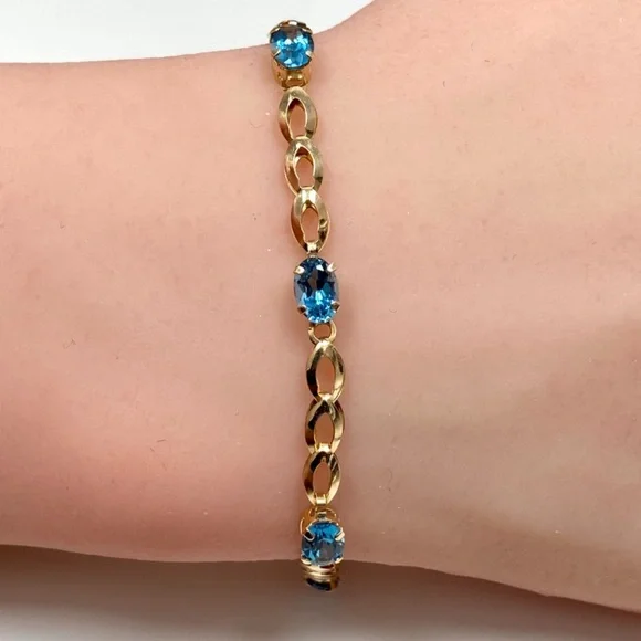 10k Solid Yellow Gold Genuine Blue Topaz Bracelet (7 inch).