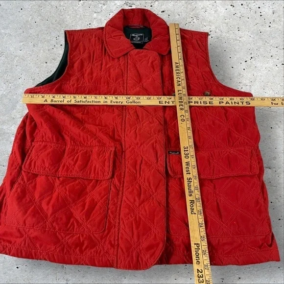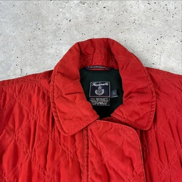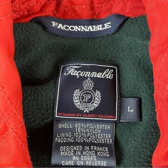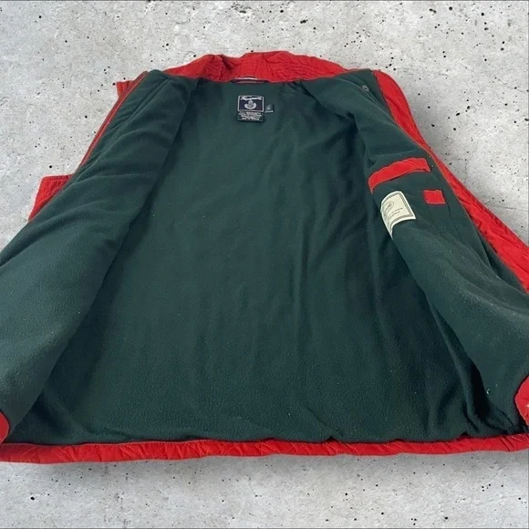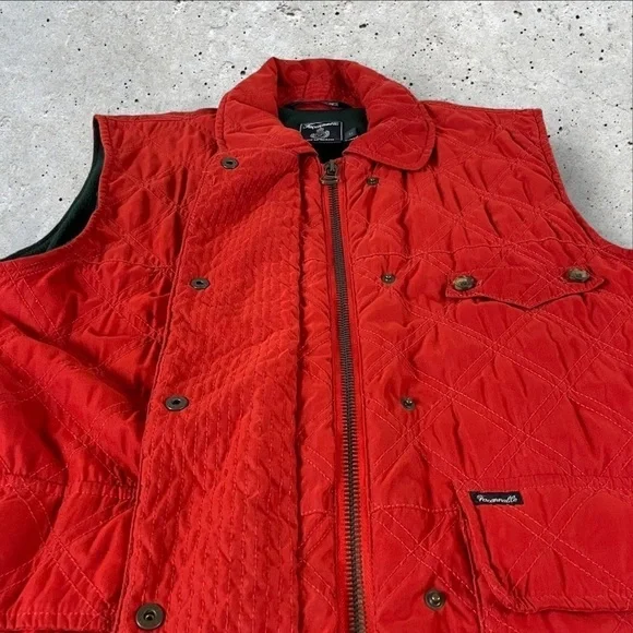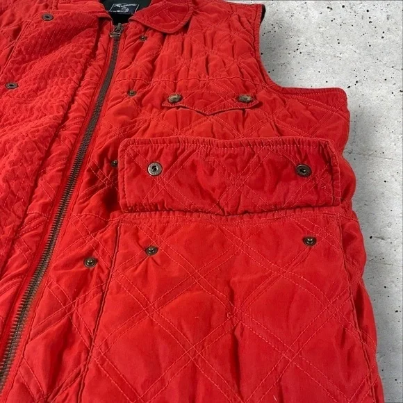 Faconnable Vest Mens Large Red Water Repellant Full Zip Fleece Lined QuiltedR1