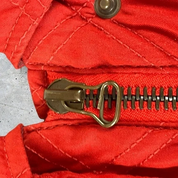 Very good pre-owned condition. No holes, rips. Tiny spot on bottom hem. The zipper is a little hard getting up and down, especially on the lower portion. It works fine and...