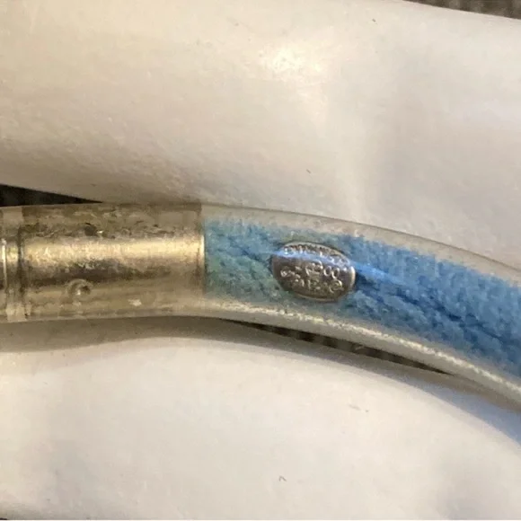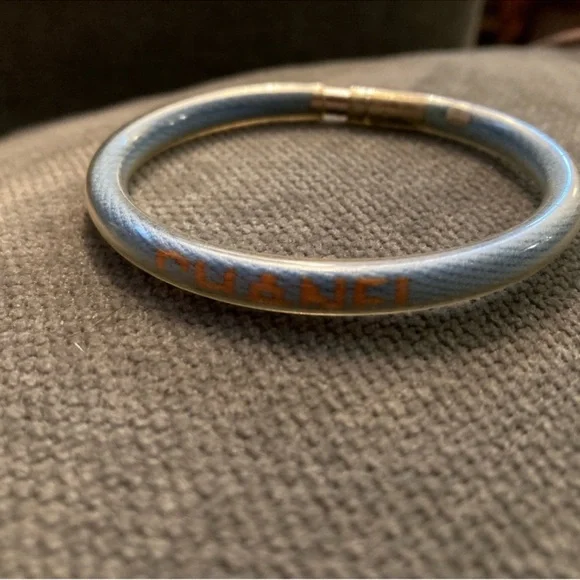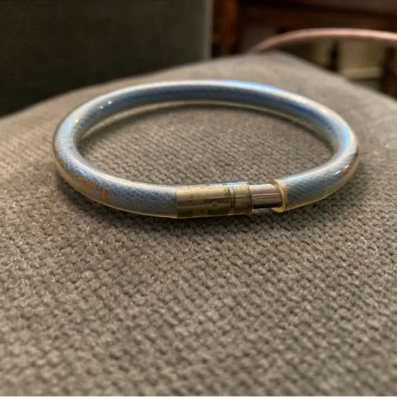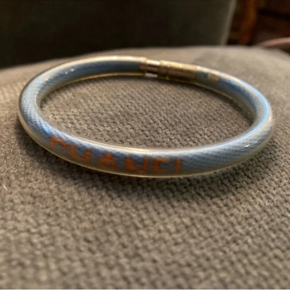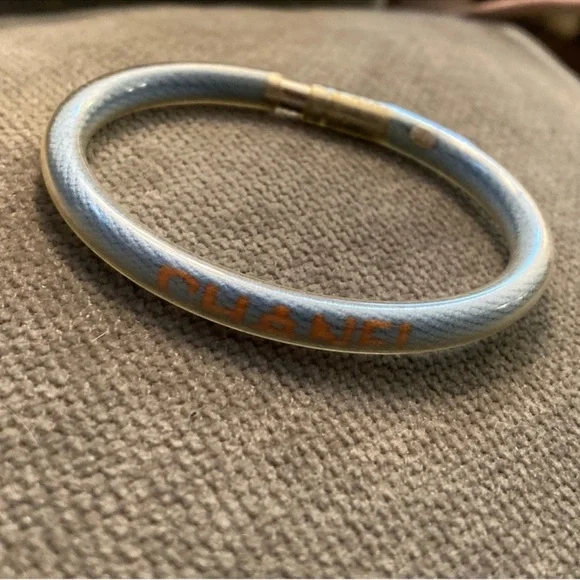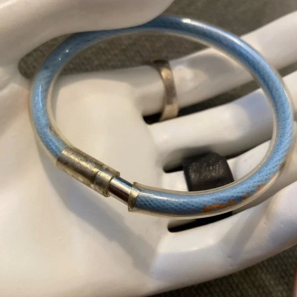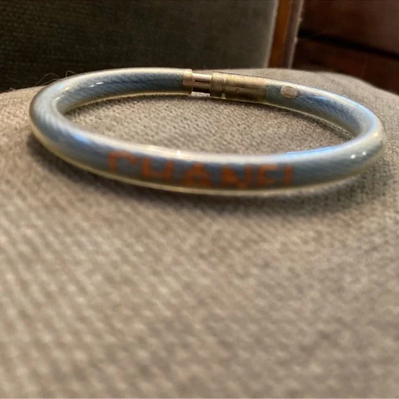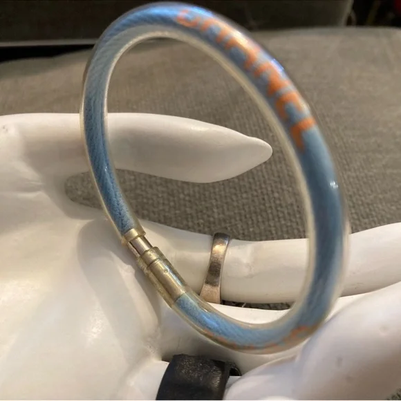 Authentic Bracelet Bangle Vinyl / CottonLight Blue Orange Color LogoElevate your look with this stunning bracelet from their Sports Line Collection. The exquisite combination of blue, orange and silver adds a touch of elegance to your overall look for the summer!Color: light blue, orange Material: vinyl, cottonAccent: logoHallmark stampMade in FranceTotal length: Approx: 20cm/7.9inPre-owned condition.There are scratches on vinyl and hardware. Please see all photos for further details and ask questions if you have them before purchasing . Thank you
