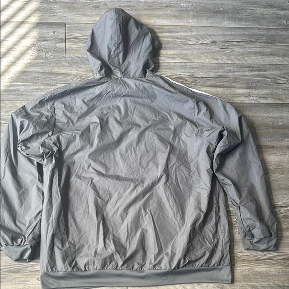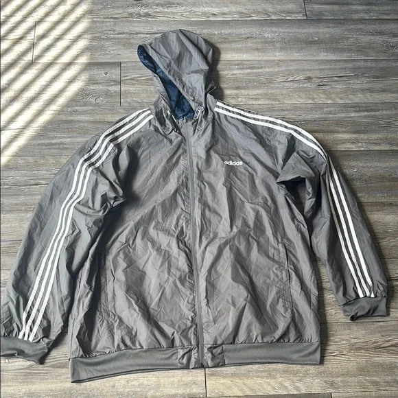 Adidas Blue and Gray Hooded Windbreaker with Stripes (Reversible)
