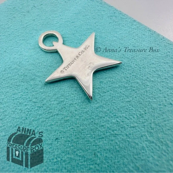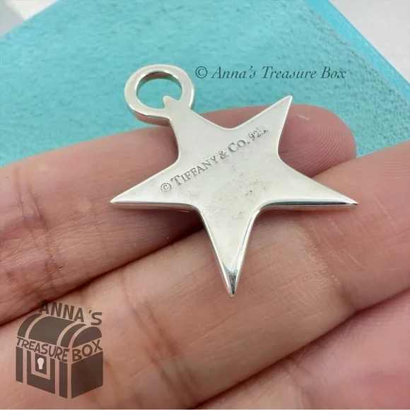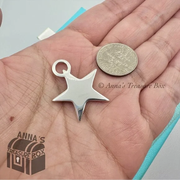 Pre-owned.In excellent condition.Kept in Tiffany blue pouch, ready for gifting.One side (the front) is perfect, but the other side showed some porosity during the polishing process.Normal for older pieces, and cannot be seen when worn.Price reflects.This is an authentic Tiffany & Co. 925 silver star charm pendant.Star size is approximately 1" x 7/8".Perfect as a necklace or a charm on a bracelet.Dime for size comparison.Please see all photos and video on this piece.Comes with Tiffany blue pouch.If you have any questions, please ask :)