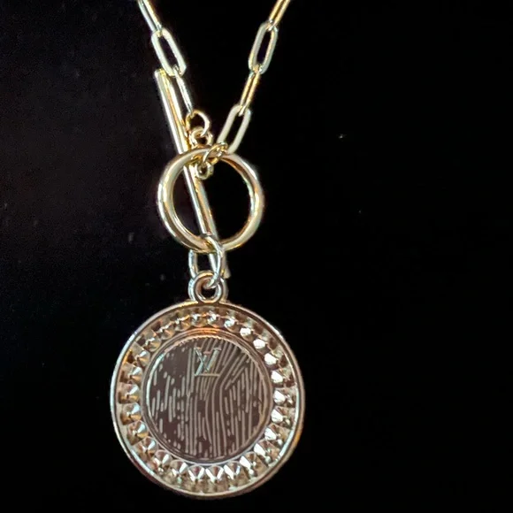 Louis Vuitton Charm Necklace PaperClip Round Toggle18K gold plated 18”long chain