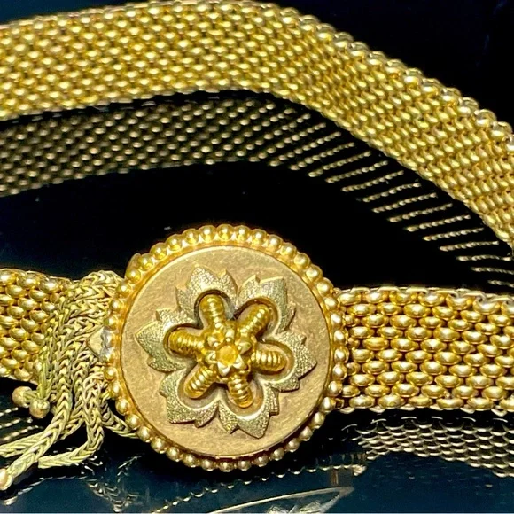 Antique Victorian 1871 Gold Mesh Tassel Slide Bracelet 9.5”