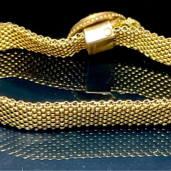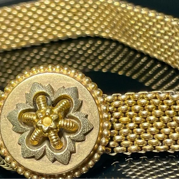 Rare Victorian slide bracelet Long 9.5 inch, on a mesh chain with large starfish like pendant clasp, with flowing tassels. Gold filled, Victorian estate jewelry. Extremely rare to find them without any tarnishing and very high polish gold finish, especially from this era.