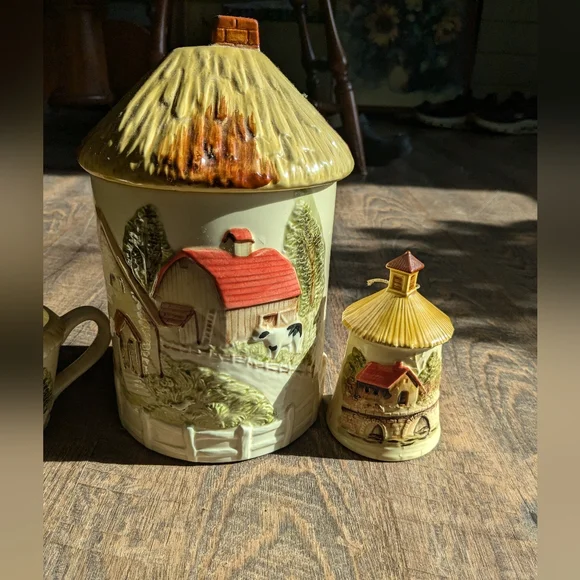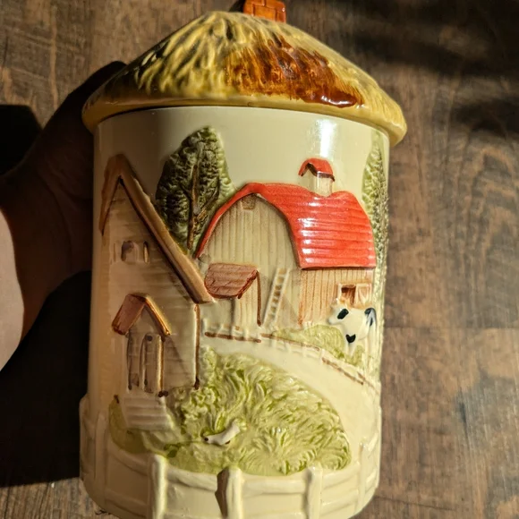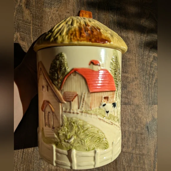 Rosenfeld COOKIE JARFarmhouse cow lovers Thatched Roof Country Barn Bell Gravy