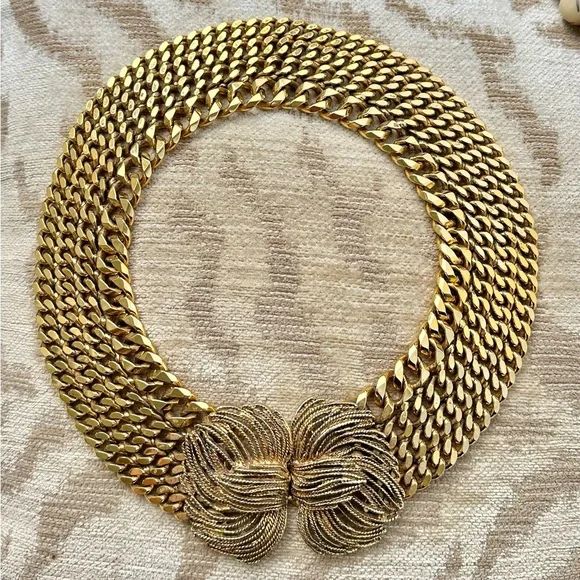 Lizzie Fortunato gold chain collar necklace with large decorative clasp - rare!