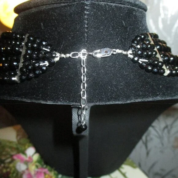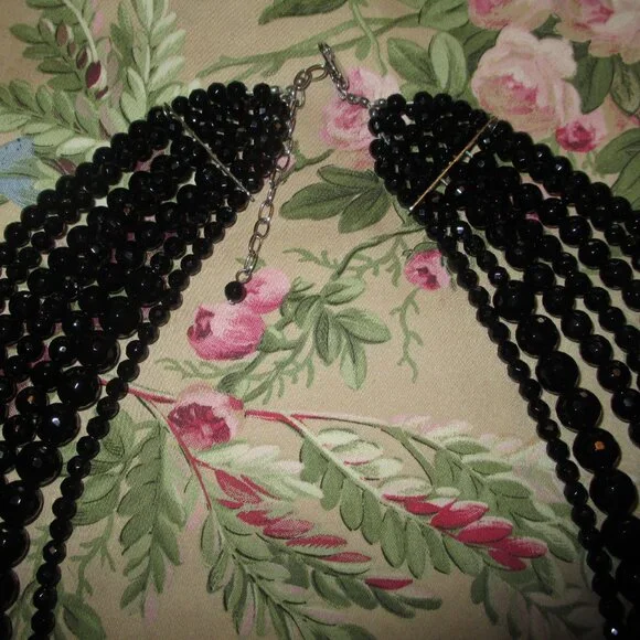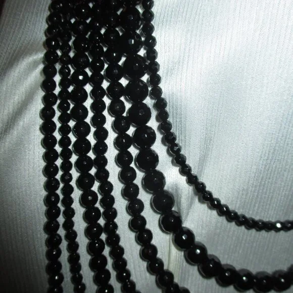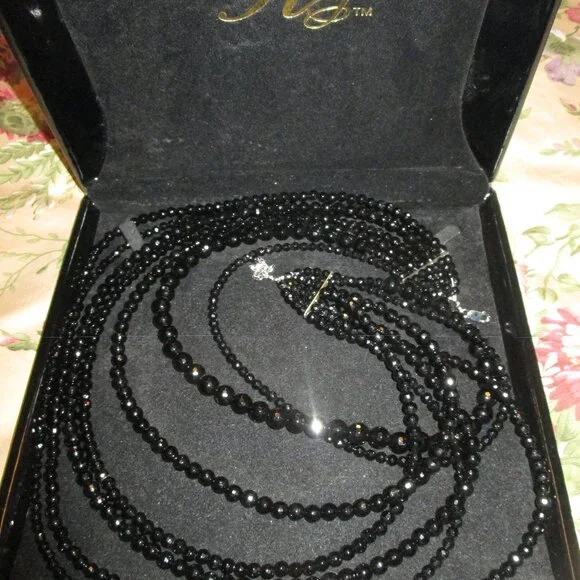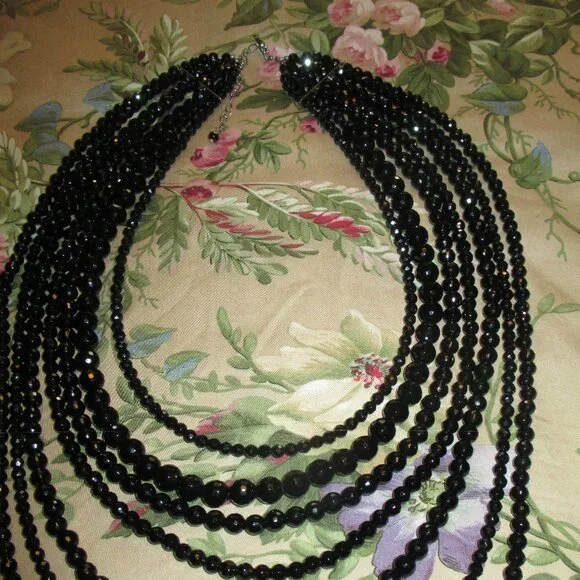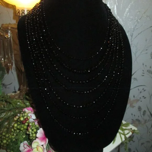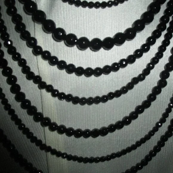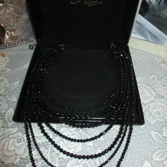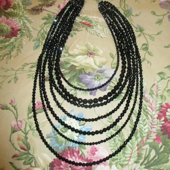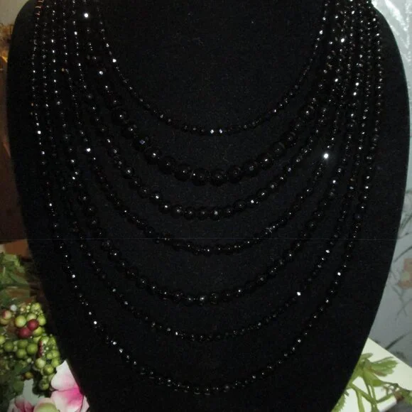 Beautiful Sparkle Sheen to this Necklace,Looks Beautiful with a Suit or Gown,Seven Strand,Heavy Weight, Silver Clasp,15" First Strand,26" Last Strand,2 1/2"Extender,Very Hard to Photograph,Sure Does Shine,Case has Marks