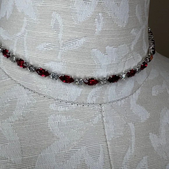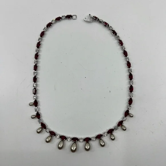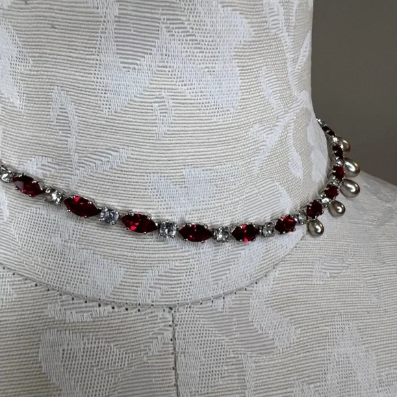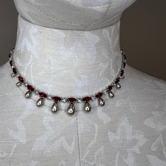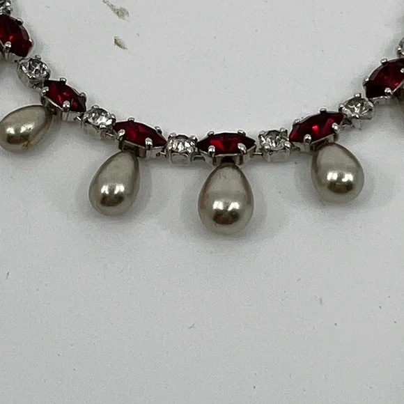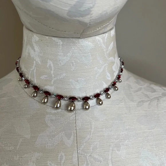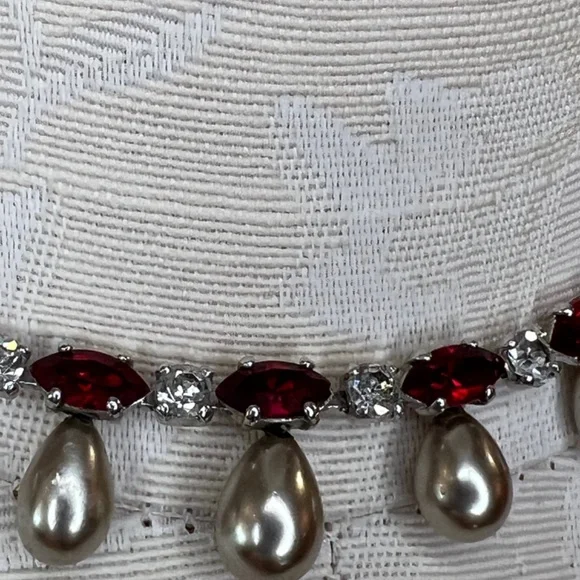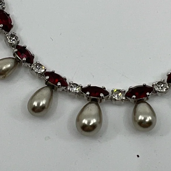 Rare Vintage Engel Brothers Rhinestone, Faux Ruby,Tahitian Pearl Choker/Necklace