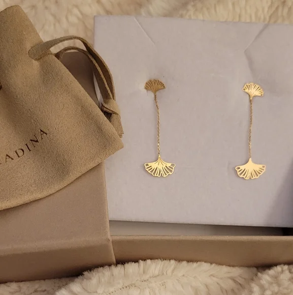 DescriptionDress up your everyday looks with the fun flare of our Carnevale Drop Earrings. Intricately designed Ginkgo leaves are connected by a delicate chain to offer an elaborate appeal that´s worthy of its name.Materials14k Solid Gold 14k solid gold is one of the most popular choices for everyday fine jewelry because it offers an exceptional balance of wearability and luxury. 14 of its 24 parts are pure gold which makes it stronger and more resistant to scratching than 18k gold. Look for a "14k" or "585" stamp on your piece, which represents a composition of 58.5% gold.