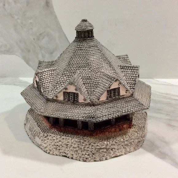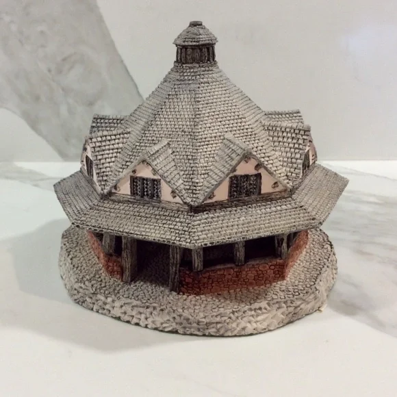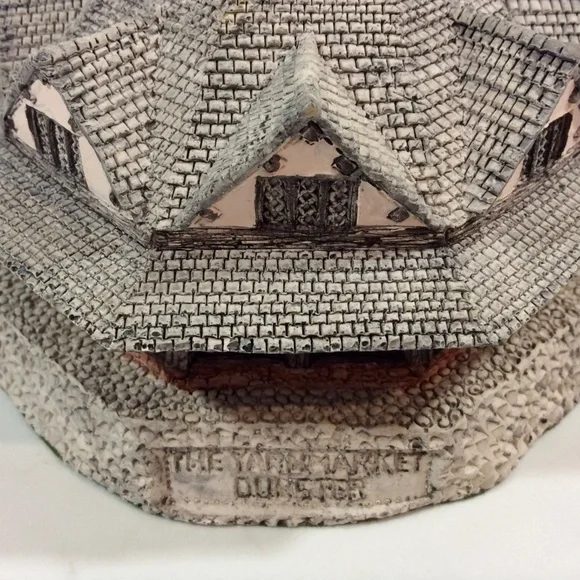 Artist: Mike FullerApproximately Measures: 4.75” roundCondition: Mint with NO chips, cracks or damage! No original box from a smoke-FREE home!HISTORY OF DUNSTER YARN MARKET:Lying between the wooded hills of Exmoor and the sea, Dunster is one of the most attractive villages in Somerset. In the 12th century it sat on the coast, and thrived as the main trading port for Exmoor. However, when the sea retreated, leaving Dunster two miles inland, it continued to prosper as a centre of the wool trade, and it is from this era that Dunster´s striking Yarn Market dates.By the 16th and 17th centuries demand had shifted from raw wool to finished cloth. Since Dunster cloth was woven in nearby mills, the village remained prosperous, as the building of the Yarn Market shows.Built in 1609 and repaired in 1647, it sits in the middle of the high street as a monument to this trade. Before it was built, most of the buying and selling would have been done in the open air, but the English weather being what it is, there must have been occasions when trading was halted by wind or rain. Sellers must also have been worried about the security of their goods. The Yarn Market was a permanent solution to all these problems.