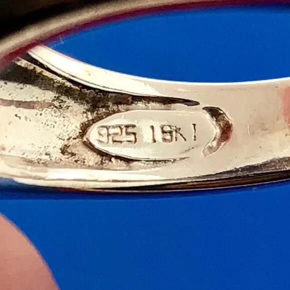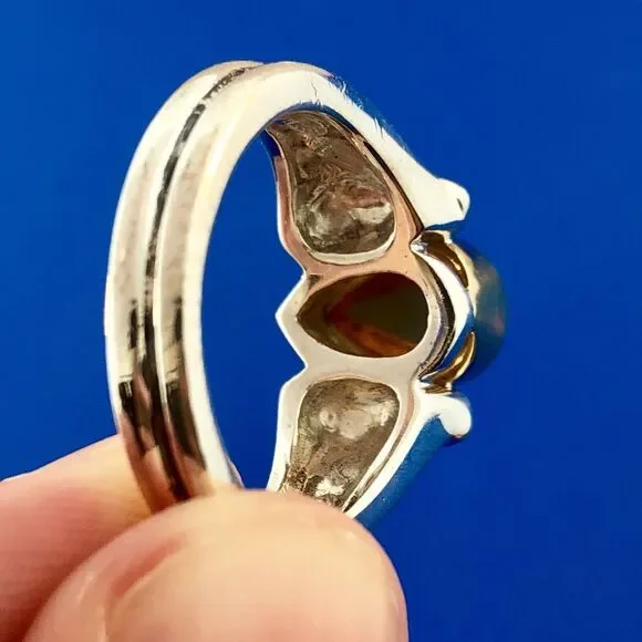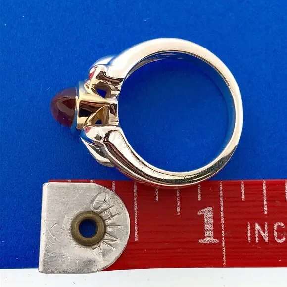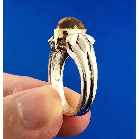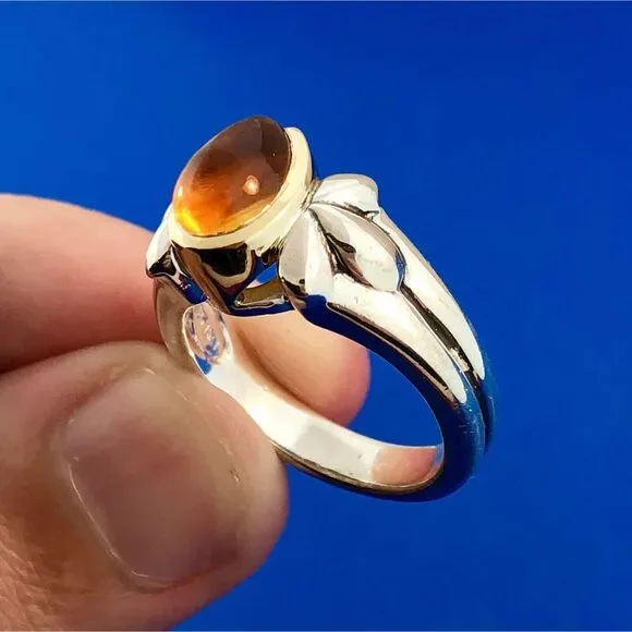 * Designer Signed 925 Sterling Silver 18K Yellow Gold Citrine Pear Cabochon Ring* Ring Size: 6.75* Top of ring measures: 1/2" x 1/2"* Height: 3/8"* Citrine total carat weight: approximately 1.50 tcw* Ring weight: 8.2 tgw* Marked: Artist´s signature*925*18K* Condition: Great* S999