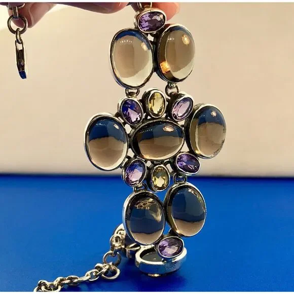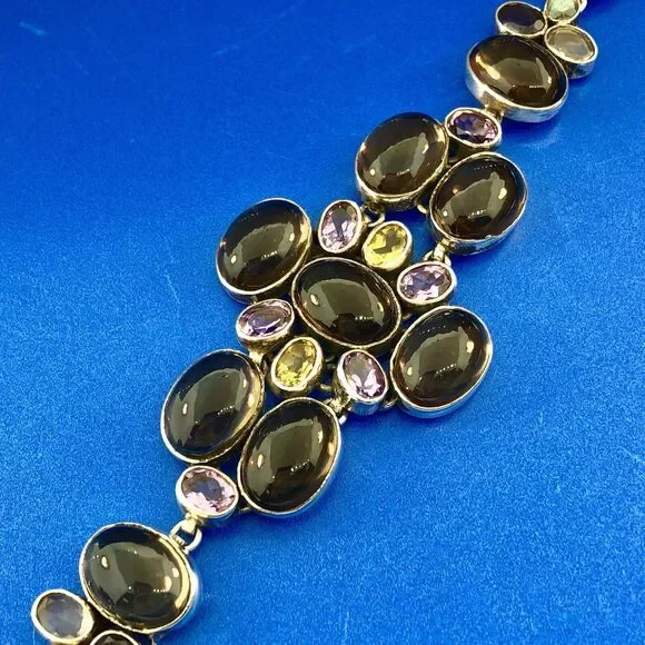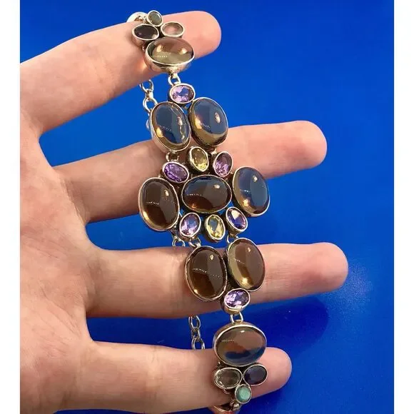 Vintage Sterling Silver 925 Topaz Amethyst Citrine Statement Anklet Or Bracelet