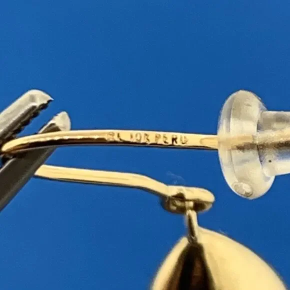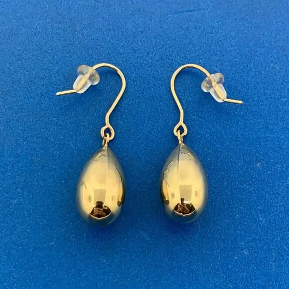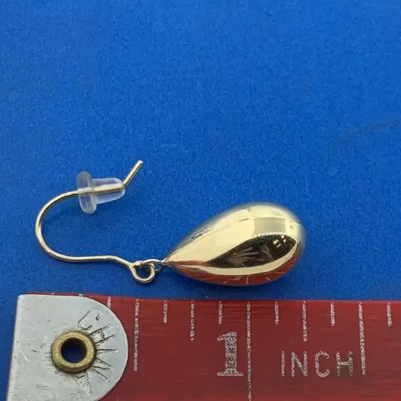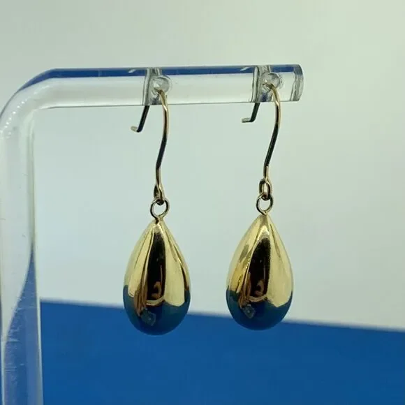 * Designer Peru 10K Yellow Gold Pear Teardrop Polished Dangle Drop Hook Earrings* Length: 1-3/8"* Width: 3/8"* Weight: 1.3 g* Marked: MAKERS MARK * 10K * PERU* Fastening: Friction back-INCLUDED* Condition: As pictured.* G3252