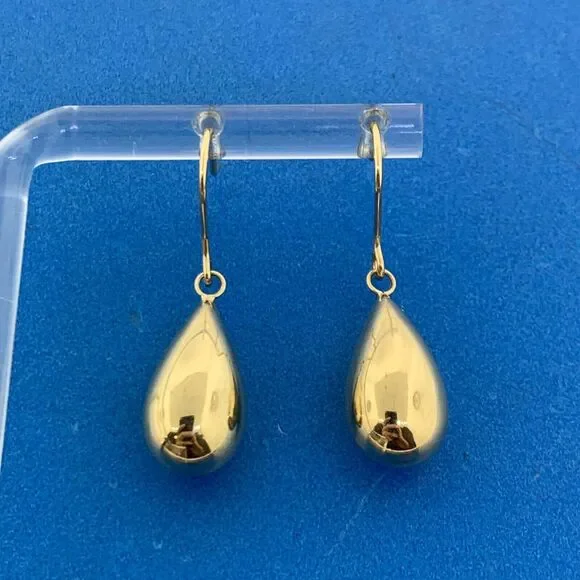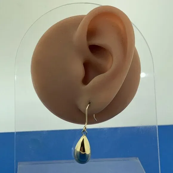 Designer Peru 10K Yellow Gold Pear Teardrop Polished Dangle Drop Hook Earrings