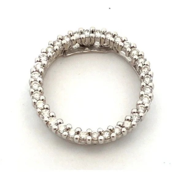 * Designer JX 14K White Gold Round Diamond Eternity Anniversary Pendant* Length: 3/4"* Width: 3/4"* Inner bale measures: 4 mm x 2 mm * Weight: 2.1 tgw* 33 Round Diamonds measure...