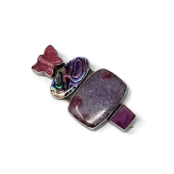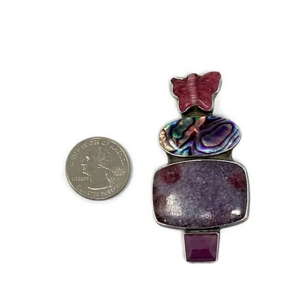 Amy Kahn Russell AKR Sterling Butterfly Brooch Pendant: Lepidolite/Ruby/Abalone