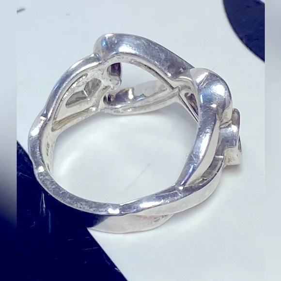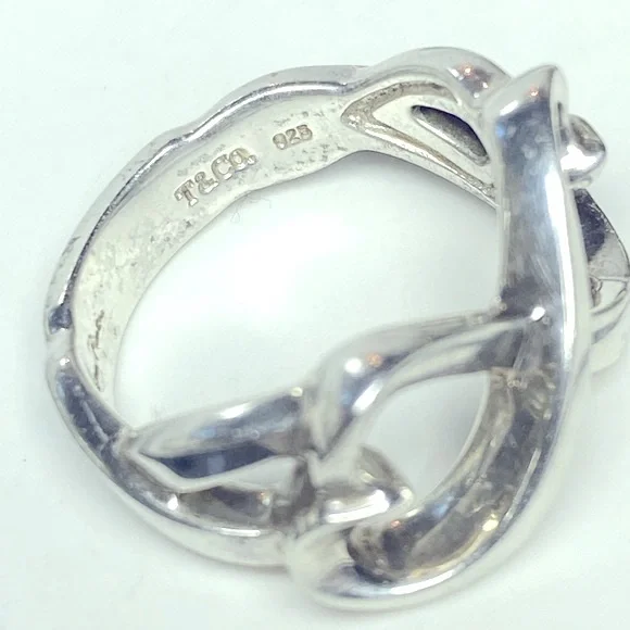 •Authentic Vintage Tiffany & Co. x Paloma Picasso Loving Double Heart Infinity Sterling Silver Ring•Size US Women’s 6•Comes Without Original Tiffany Packaging •Vintage; Purchased From Tiffany & Co. In The Early 2000’s•Great Condition; Minimal Signs Of Wear On Exterior Palm Side Of Ring•The Last Three Photos In This Listing Are Not My Own Nor Are They Of The Exact Item You’ll ReceiveMeasurements: Diameter: 0.75”Heart: 0.5” tall at highest point of heartBand: 0.12” thick