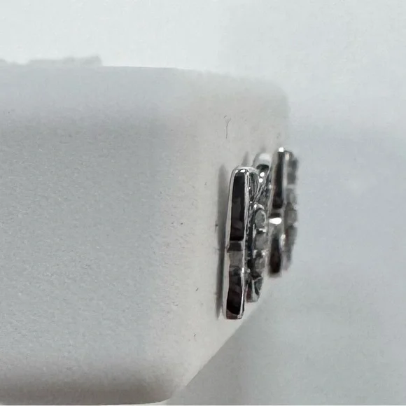 Pair of butterfly motif earrings set in 10kt white gold encrusted with black and white diamonds weighing a total of 0.25 carats in a pave setting with pushback posts....