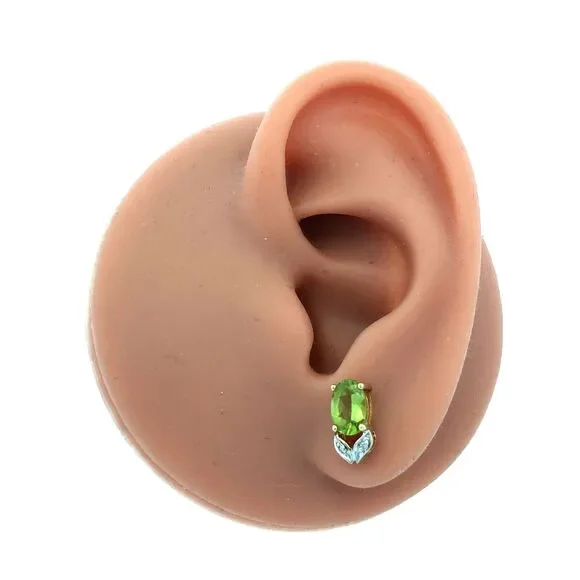 * Designer 10K Yellow Gold Green Peridot Diamond August Occasion Stud Earrings* Length: 7/16"* Width: 1/4"* Weight: 1.2 tgw* 2 Oval Peridot measures approximately 7.3 mm x 4.6 mm...