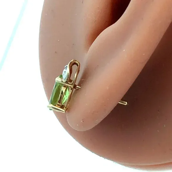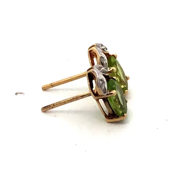 Designer 10K Yellow Gold Green Peridot Diamond August Occasion Stud Earrings