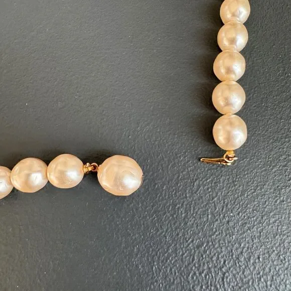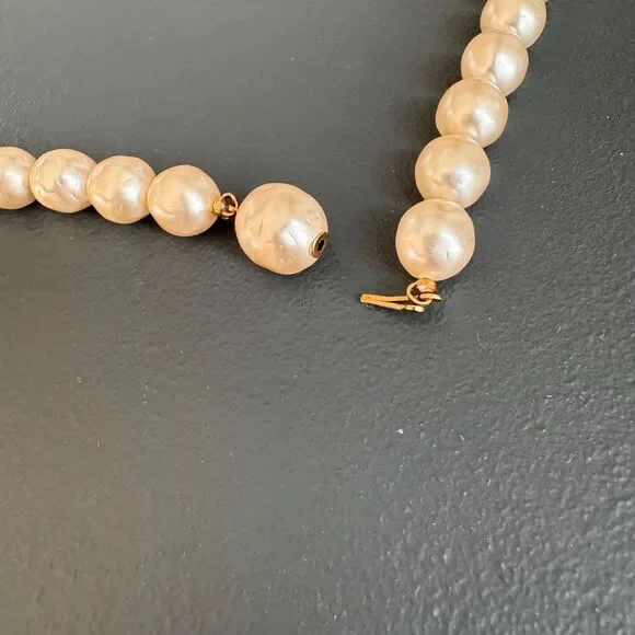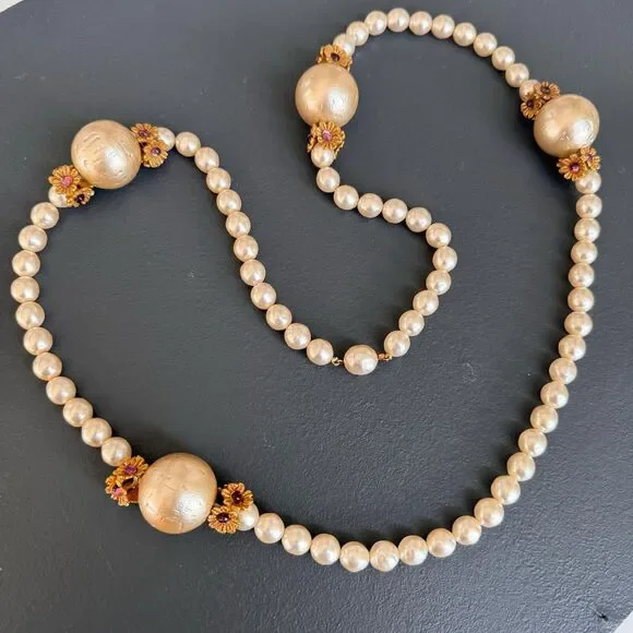 Art Deco French Faux Pearl Gripoix Glass Gold Tone Spacer Necklace 36"L