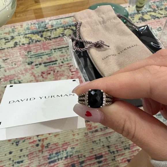 David Yurman Petite Wheaton RingSterling Silver with Black Onyx and Diamonds, 10mmSize 6Certificate of Authenticity, David Yurman dust bag, and David Yurman dusting cloth included