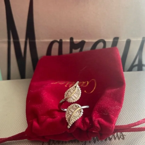 New! Stunning Ring! Crystal Palms Wrap Ring.Diamond Cut Crystal Baguettes.14k white gold,Adjustable Wrap 6 - 8 Made in France.Richemont Jewellery Designs.Purchased at Beverly...