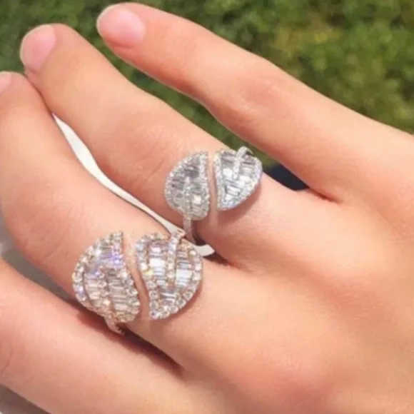 New! Stunning Ring! Crystal Palms Wrap Ring.Diamond Cut Crystal Baguettes.14k white gold,Adjustable Wrap 6 - 8 Made in France.Richemont Jewellery Designs.Purchased at Beverly Hills Jewelers, 90210.Retail Price: $2,500