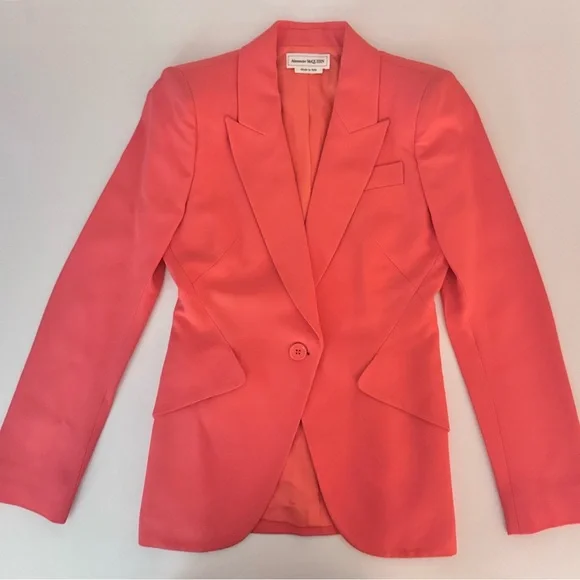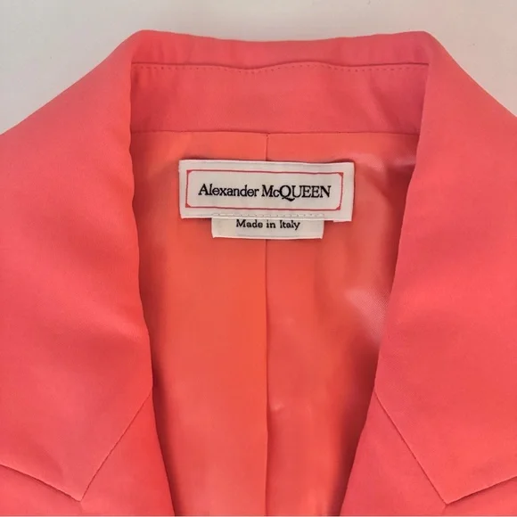 Alexander McQueen Suit SetPeak Crepe Blazer and TrouserDetails- Self: 52% viscose, 48% acetate- Lining: 100% cupro- Made in Italy- Dry clean only- Front button closure- Padding at shoulders- Side flap pockets- Buttoned cuffs- Item sold as a setItem Never Worn