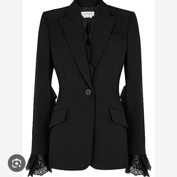 Alexander McQueen Lace-Trimmed Wool-Blend Crepe Blazer and Pants Suit Set 40