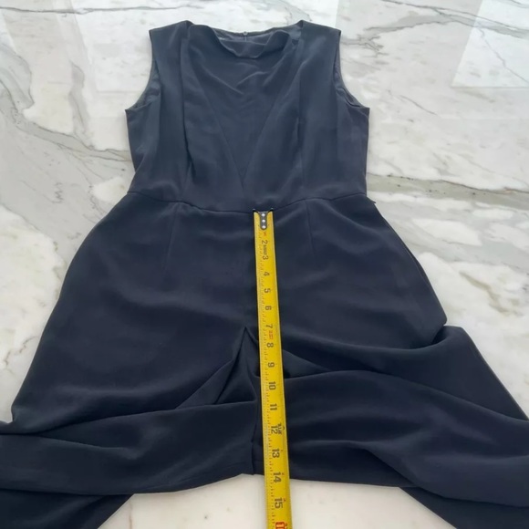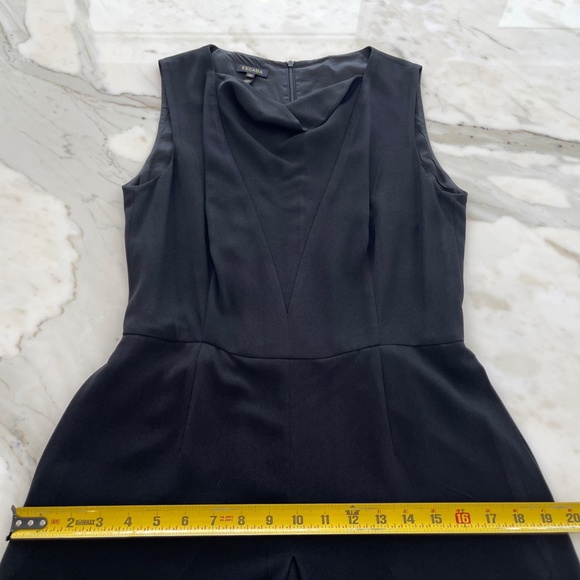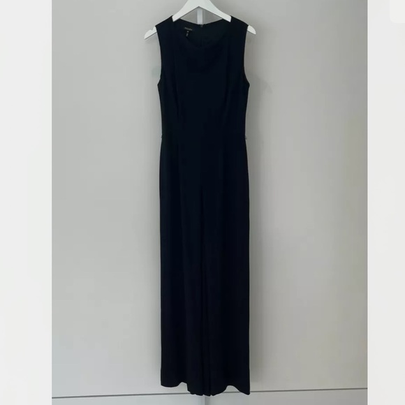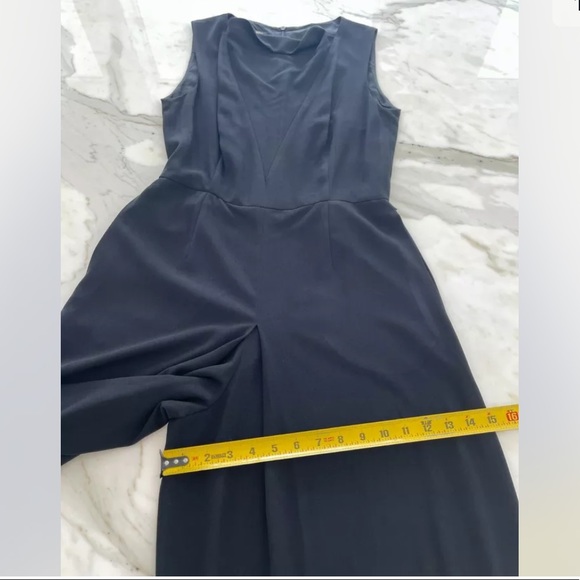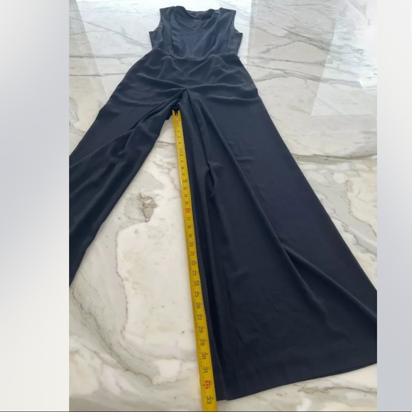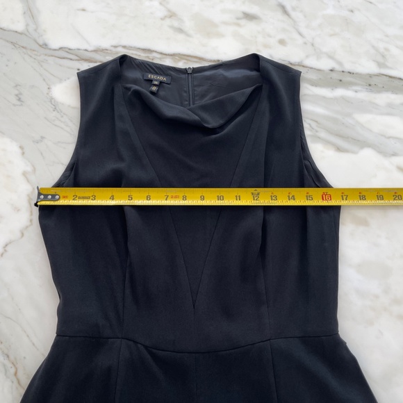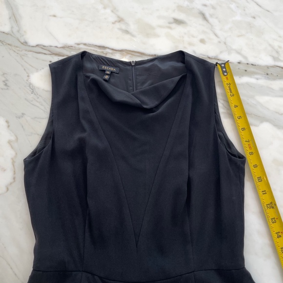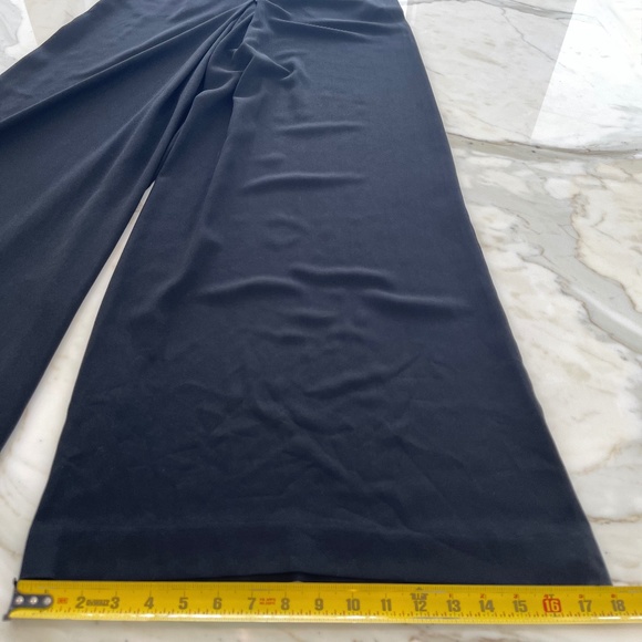 Brand: EscadaMaterial: Unknown, lightweight stretchy materialColor: BlackSize 6Approximate Measurements:Chest: 34"Underarm: 8.25"Waist: 28.5"Hip: 39"Rise: 13.5"Upper Leg: 30"Crotch Inseam to Hem: 33"Hem Width: 36"Condition: Very good, worn once, noticed small pull on front, not sure if there are more, didn’t see any others, dry-cleaned and will arrive wrinkled. Has belt loops for skinny belt, no belt included.