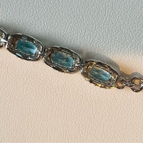 BST2 7CT Natural SWISS Blue Topaz TENNIS Bracelet Rhodium Sterling Silver