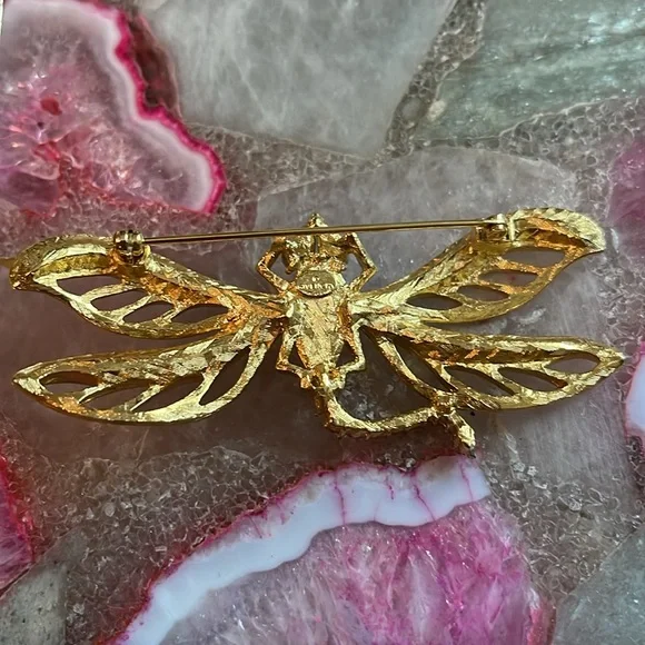 Givenchy Rare Vintage Dragonfly Goldtone & Crystal Brooch Pin